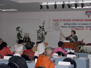 • A meeting of the Peace Council was held in Chiang Mai, in northern Thailand, from Sunday, February 29, to Friday, March 5, 2004. Peace Councilor Venerable Dhammananda Bhikkhuni was the host Councilor. The purpose of the meeting was to reduce barriers to cooperation between women's organizations and faith communities (often perceived as indifferent or even hostile to women’s issues). (A more complete description of the context and purposes of this gathering can be found below.)