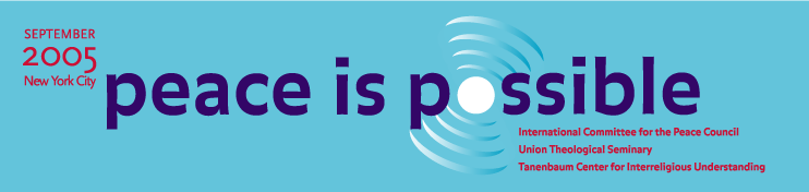 • The 2005 meeting of the Peace Council was held in New York City from Sunday, September 25, to Friday, September 30, 2005. On Monday, September 26 at 5:OO pm the Peace Councilors presented a public interfaith service at Riverside Church in New York City, with the theme, Peace is Possible. More than 2,000 persons attended. Peace Councilors Dr. Chung Hyun-Kyung, Rabbi Levi Weiman-Kelman, H.H. Tenzin Gyatso, 14th Dalai Lama, Ven Dhammananda Bhikkhuni, Rev. Gonzalo Ituarte, OP, Swami Agnivesh, Rev. Thomas Keating, OCSO, and Sr. Joan Chittister, OSB, addressed the gathering.